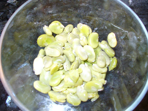 Then we had to shell the beans, again. They have another hard fibrous shell around each individual bean. Apparently fava beans are very concerned about a nuclear attack or something. After multiple shelling sessions, we ended up with this: