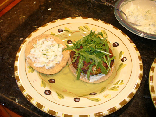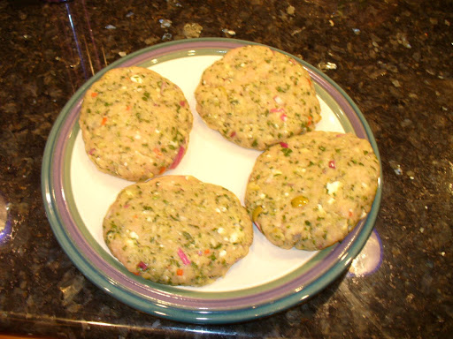 Okay, so in addition to our Mudammes, we made one of our favorite dinners. Mediterranean Turkey Burgers, as adapted from Cooking Light magazine.
