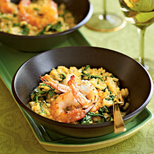 This was our dinner last night. The recipe is from Cooking Light: Pan-Seared Shrimp and Arugula Risotto. It was quite tasty and creamy. If you have never made risotto before be prepared to stand at the stove for the 30+ minutes it takes to cook the rice, stirring constantly. The stirring is the key to the creamy consistency of the risotto.