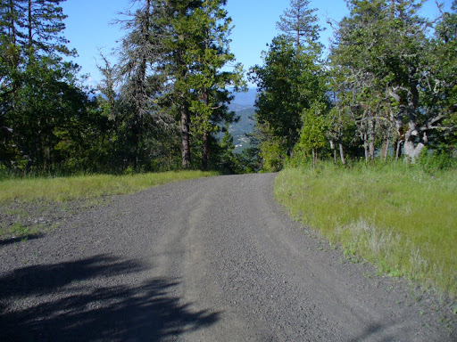 We hit the road at the upper gate and set off at a brisk pace on a sunny, although somewhat cool and breezy afternoon. The first ¾ of the hike has a nice, relatively gradual climb to it. It is a nice workout, but nothing terribly strenuous. As we wound our way up the road we came to a point where we were on the north side of the peak looking north. From there we could see the two table rocks off in the distance, where we had been hiking the weekend before! Cool!