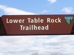 Lower Table Rock is the “twin” to Upper Table Rock, which we hiked a couple weekends ago (see prior hiking post for details). The Table Rocks are estimated to be about 7 Million years old, and created by lava flows. They rise up out of the valley about 800’ and have a flat plateau top, hence the name.