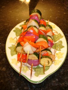 For dinner one night we marinated, in a basic balsamic vinaigrette, onions (red and white), red pepper and zucchini;