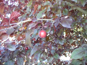 Turns out our “cherry” tree, or what we thought was maybe a plum-cherry is actually just a plum. According to the neighbor, Cathy, it isn’t really supposed to fruit, more of an ornamental, but sometimes they do. I think she called it a Thundercloud Plum. So that was interesting.