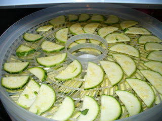 I also decided to dehydrate some! After doing some research, turns out that some people will eat dried zucchini as chips! I dried my first batch yesterday, 2 medium size zukes filled my four trays and got me 1 pint of dried zucchini chips. These ones are unseasoned, but I might try adding some cumin or garlic or salt to the next batch(s).
