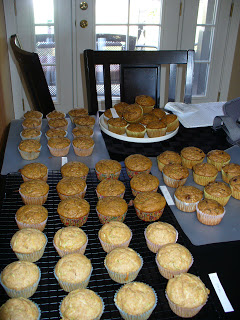 If you are anal enough to take the time to count the muffins in the picture you will see there is only 59. My taste tester, Mr. Chris Beebe, stole one of the chocolate chip ones! He said they were good. Not sticky or too sweet. A good muffin for breakfast or lunch. Thank you, Mr. Beebe!