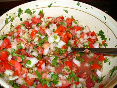 I also made a big ole batch of salsa. I used a bunch of stuff from our garden and it is all chopped and mixed and in a big tupperware ready to go.