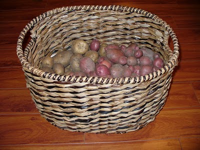 Do you find peace in the potatoes? I do. That is what I enjoy about gardening/harvesting. When I am picking blackberries, or picking bunches of basil, or cleaning the dirt off the freshly pulled potatoes, or any of those kind of mindless things where there is NO way to rush through it, it just takes the time that it takes, I have a great opportunity to let my mind just wander. I find that to be very peace-inducing. I think of all kinds of things. Sometimes I think about stuff to post, sometimes I think about people who have hurt me or abandoned me, sometimes I think about friends or fun things. It just depends, but it is a meditative time almost where I can just sit and think. How many opportunities do we get in life to just think? Not enough.