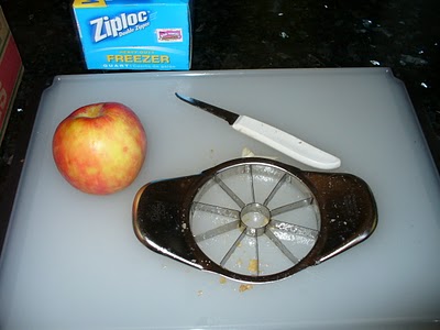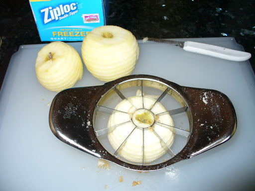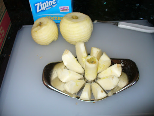A couple of gadgets that I really do use and love came in quite handy yesterday while I was getting ready to take care of the 10 lbs of apples that I bought. (This was the SECOND box of apples I bought because apple box numero uno didn’t turn out.)