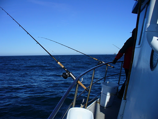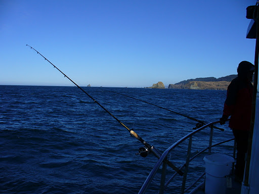 It was unfortunate that salmon season in the ocean was closed because 3 different big, beautiful salmon were caught yesterday. We had to let them all go! We didn’t catch any sharks or other crazy things. One guy caught a “china”. Not sure, but it was an unusal fish to be catching that time of year, according to one of the boat hands. A few people pulled in some mackeral, including Chris, which the boat guys told him to leave on his rig to use as bait. In all, I ended up catching 1 medium ling cod, a couple different black snapper and two yellow tail. Chris caught several black snapper, a yellow tail and the mackeral. He didn’t catch a cod 😦 bummer.