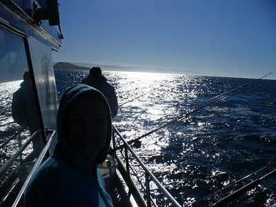 After that we headed off down the highway to Brookings. We stayed, as usual, at the Best Western Beach Front Inn. Every room has a balcony that looks out at the ocean. It was so gorgeous! Cool, but not cold. The sky was clear; we could see the stars and the Milky Way. We could hear the clanging of the bell on the bouys and the fog horns. We enjoyed a bottle of 4 buck chuck and headed to bed. Unfortunately, we hardly slept due to a variety of factors. It made for a long night, especially since we had to be up EARLY (5:30!) to get ready, have some breakfast and make it to the charter boat. Let’s just say I was a little, uhm, grumpy first thing in the morning after a night of almost no sleep, which was preceeded by 3 nights of very little sleep. FUN FUN.