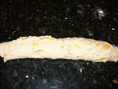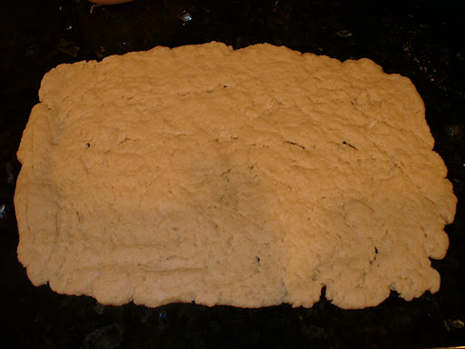 4. Roll or pat into a rectangle about a 1/4″ thick, and sprinkle with cheese.