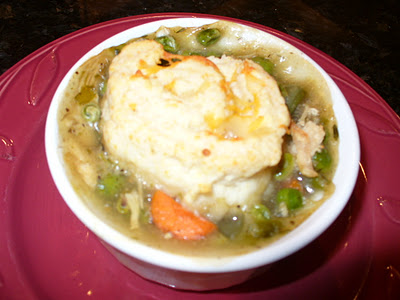 I took some of the extra this time and filled four ramekins with the veggie mix and topped them with a single biscuit each. I am going to freeze them for leftovers! (Leftovers out of leftovers…love it!)