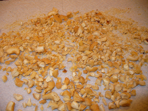 2 cups chopped nuts, divided (I use cashews), 1 cup chopped fine, 1 cup chopped coarse