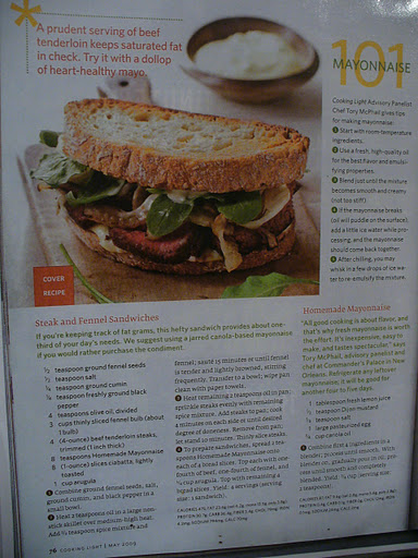 Many of you know that I read Cooking Light magazine, and end up making quite a few of their recipes. I think they do a really great job of balancing yummy food and lower calories. The magazine reminds us that no food is “off limits” and that things like steak and mayonnaise can be a part of a healthy diet, when eaten in moderation. I really enjoy that aspect of Cooking Light, because it is a belief system about food that I share.