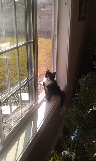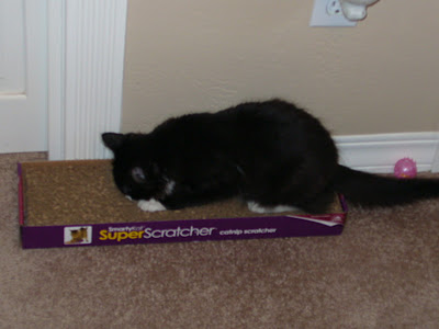 Roxie is excellent at using the potty box, listening when she is told no, eating her crunchies, drinking her water, scratching on her appropriate scratching items and has paid no attention to the Christmas tree whatsoever.