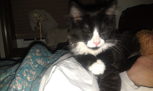 We are super happy to have a new little kitty to love, especially one that is so sweet and well behaved.