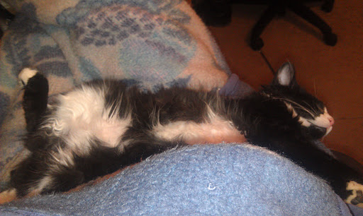 Roxie has filled a big hole in our hearts and home. She is just a darling little love kitty and likes to take turns sitting with me and with Chris.