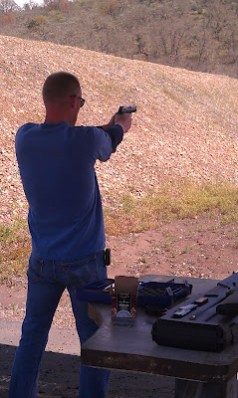 Chris started off shooting his pistol. It is LOUD.