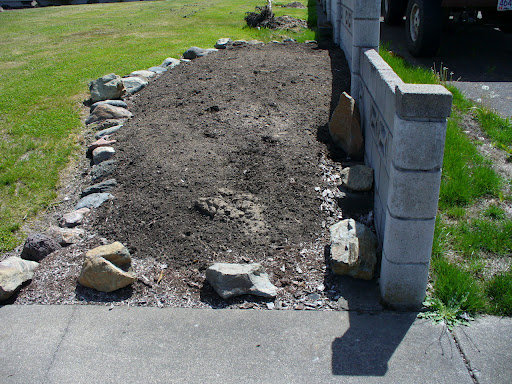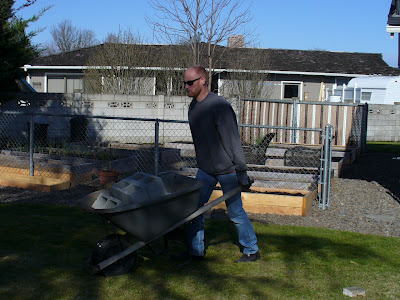 We also finished off the other new wood boxes. Chris spent a good portion of Saturday a few weeks ago hauling something like 4 yards of topsoil and compost to fill up all the boxes.