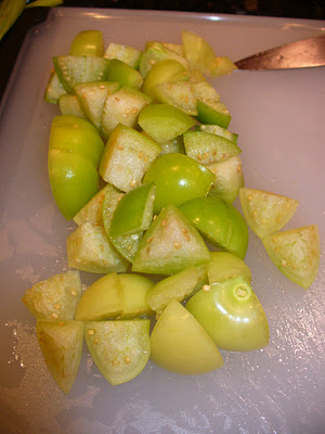 Because I have them, and I am revamping the recipe, I chopped up a handful of fresh tomatillos.
