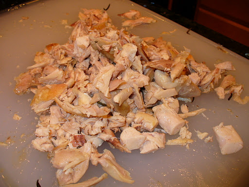 Next take some pre-cooked chicken and shred or chop it. You can use white or dark meat or a mixture of both. You can use storebought rotissere chicken, roast your own chicken, poach the chicken, cook it in a crockpot, whatever, I don’t care, just get yourself some cooked chicken. This recipe is great to have in your arsenal if you regularly roast or cook a chicken and only have part of it for the meal. The leftover meat is perfect to use up in enchiladas the next night!