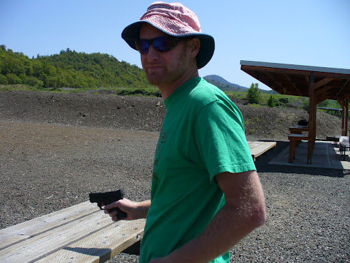 Do you remember that I couldn’t even fire his other 9mm when we went out shooting a couple weeks ago? Well, I did not have that problem with this gun. It is quite a bit smaller and the trigger is not so heavy. But for some reason I was a terrible shot with this gun. I felt like the whole angle was off with the target for me – like I was too short or something.