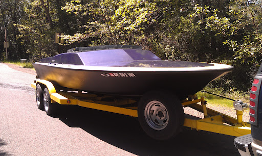 I took a couple pictures of Chris’ new paint job while the boat was on the trailer and we had a bit more room to maneuver. The photo’s he tried to get at home in the driveway didn’t show it all that well.
