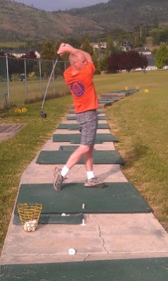 This is actually Chris’ second trip to the range this year and my first. He is getting ready for a golf tournament in 21 days. He is participating in his company golf  tournament the same day I am doing the Helvetia Half Marathon in Hillsboro. For once things worked out! His golf tournament is held in South Western Washington. Convenient!