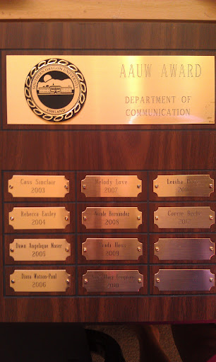 Since this is a school related post I will post my video here. The communication department has an annual end of year event where they honor various students in the department with high grade points, exemplary capstone projects, scholarship and other award winners. As I was awarded the American Association of University Women Outstanding Woman Student of 2012 for the communication department I was provided with a framed certificate to keep and a plaque with my name on it hangs in the department. (Recall I already received a certificate from the AAUW at their annual brunch in May.) I was not expecting to be called up on the stage to receive an actual award, I just thought that my name would be read! Here is the video of what actually happend. You may need to turn the sound up very loud to hear the introduction.