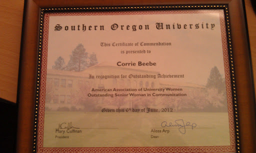 After earning her Associate of Arts Oregon Transfer degree from Rogue Community College in June of 2011, she transferred to Southern Oregon University, majoring in communication.