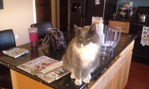 This is Asland. Asland is my neighbors cat. He likes to come hang out and play with Roxie and Roxie like to go over and play with Asland. Apparently Asland has become quite comfortable with us because this is a picture of him on my counter. Ahem. The look on his face just kills me…he’s all: “what? like I don’t belong here. Psh.”