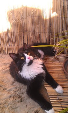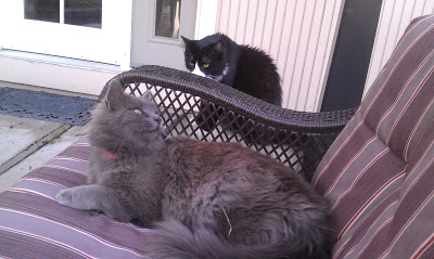 Well, in addition to Roxie’s boyfriend we have another addition to our menagerie of stray cats that like to hang out. I don’t think s/he is really a stray, but s/he like to come over and hang out, get pets and loves and just chill. At first s/he was really skittish, but apparently s/he has gotten over that now.