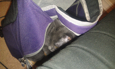 | Daisy curled up inside my backpack. |