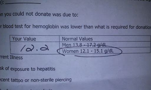 For me, I was rejected from giving blood yesterday by a margin of .3.