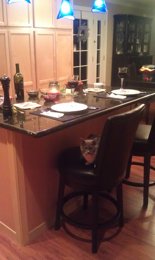 I didn’t set the table, but I did set the counter, and I used my good dishes and wine glasses, too!