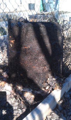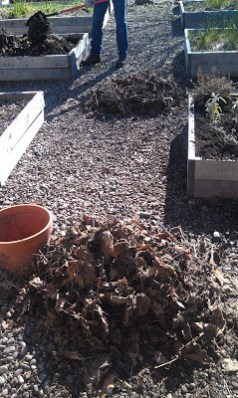 While Chris was turning all the straw up into the boxes and just generally digging around in the boxes to break up the soil and get things ready for planting (which is still a couple months off for big planting) we also dumped out our homemade “black gold” compost dirt.