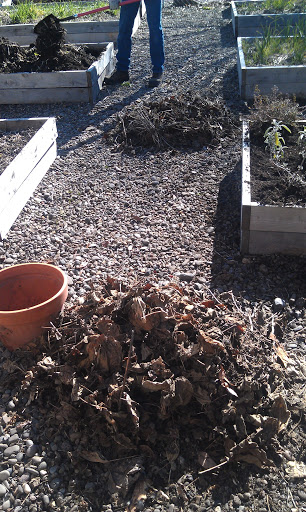 Saturday we enjoyed a morning hot tub in the sun with our coffee and then I was JONESING big time to get my garden cleaned up, so that was the primary order of business for me yesterday. It was sunny and gorgeous and I headed out with Chris in the morning to start getting things in order.