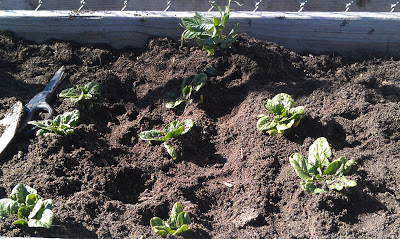 In one of the boxes I had planted several lettuces last fall. They overwintered well but were all pretty small and really close together. (I never got around to thinning them out last fall.) Since the weather has warmed a bit they have started to grow. I decided I needed to thin and space them out a bit.