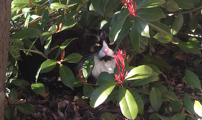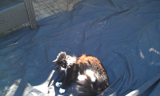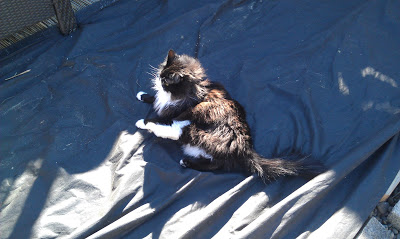 She was playing with the weed barrier. It made a cool sound and ruffled in the wind or when I moved it. Oh kitty joy! She was rolling around and it was so silly.