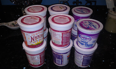 Those are yogurt containers that I reuse, and two cottage cheese containers. There are 10 large and 2 medium containers. That ought to last a while, eh?