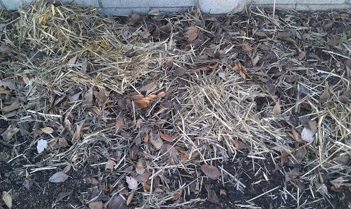 First of all, last fall we decided to put a layer of straw mulch down over the tops of all the beds. This started as the idea of just putting it down over the garlic (which we plant in the fall and harvest in the spring/summer so it needs to be kept from freezing over the winter) but the bale of straw we got was HUGE, so we had MORE than enough to cover all the boxes. Some of the straw had sprouted, which we were pretty worried about, but it was very superficial and the green grasses pulled out very easily.